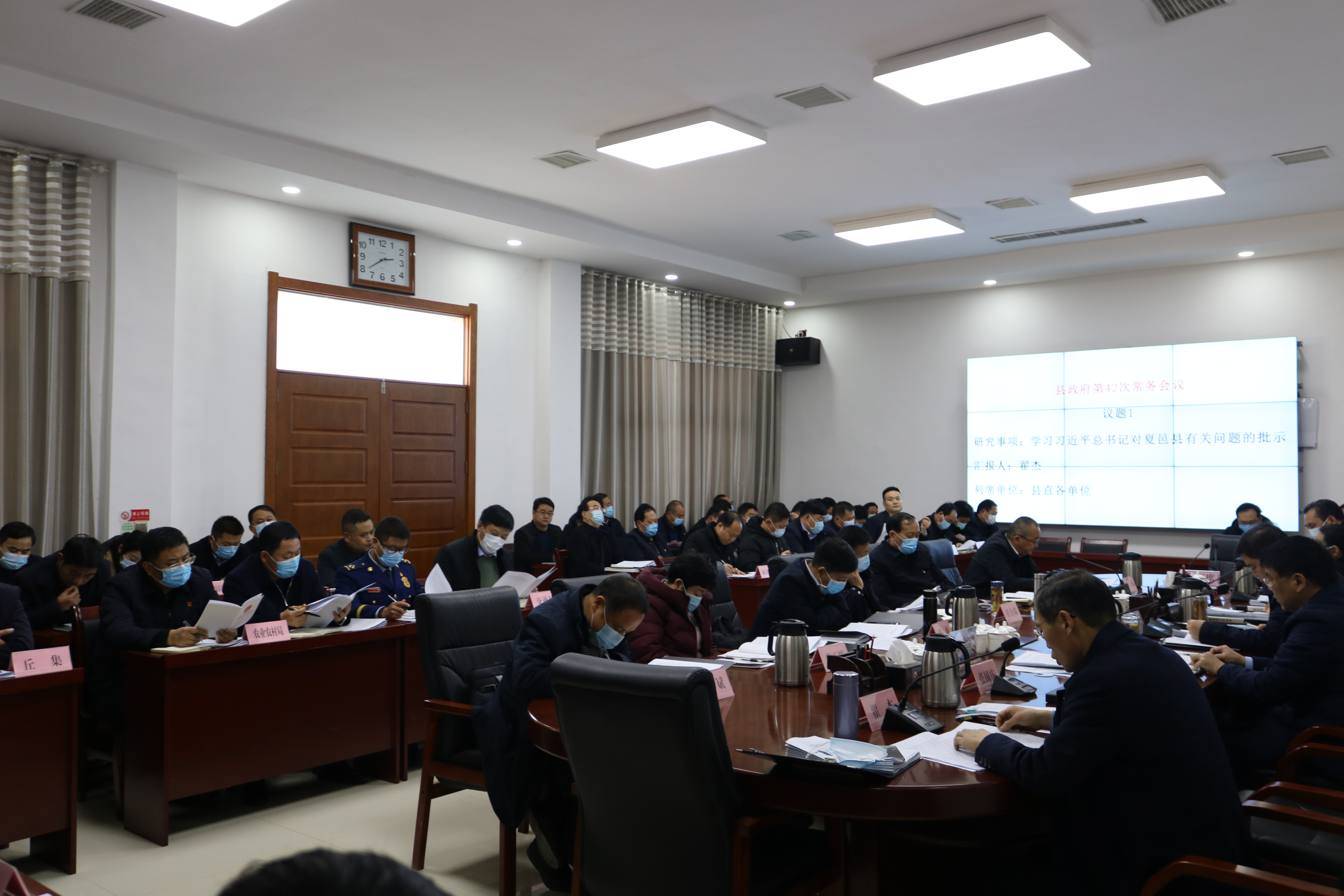 會(huì)議先后傳達(dá)學(xué)習(xí)了習(xí)近平總書記對(duì)夏邑縣有關(guān)問題的批示精神、中央經(jīng)濟(jì)工作會(huì)議精神;學(xué)習(xí)了關(guān)于我省黨政代表團(tuán)赴上海、江蘇、浙江學(xué)習(xí)考察情況的報(bào)告以及河南省消防安全責(zé)任制實(shí)施辦法;聽取了關(guān)于2020年民生實(shí)事完成情況的匯報(bào)、關(guān)于政府系統(tǒng)落實(shí)省委巡視整改工作情況的匯報(bào)、關(guān)于鹿邑縣2020年環(huán)保攻堅(jiān)工作情況匯報(bào)、關(guān)于鹿邑縣2020年安全生產(chǎn)工作情況匯報(bào)、關(guān)于鹿邑縣秋冬季新冠肺炎疫情防控工作匯報(bào)、關(guān)于成立鹿邑縣林業(yè)生態(tài)發(fā)展有限公司的匯報(bào)、關(guān)于引江濟(jì)淮工程棄土處置問題的意見匯報(bào)。