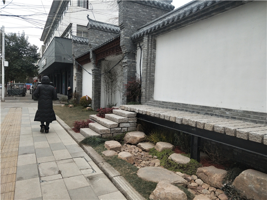 對面商鋪的張先生見證了這條小街的驚艷蝶變?!拔拿鞅甭肥抢辖?,之前這條街上的墻壁斑駁不已?!睆埾壬f,雖然街道極其干凈,但是覺得并不是很雅觀?,F(xiàn)在,綠植、竹林、亭臺取代了街道往日的蕭條沉寂,生態(tài)文化景觀一下子提振了小街的文化范,讓人覺得耳目一新。