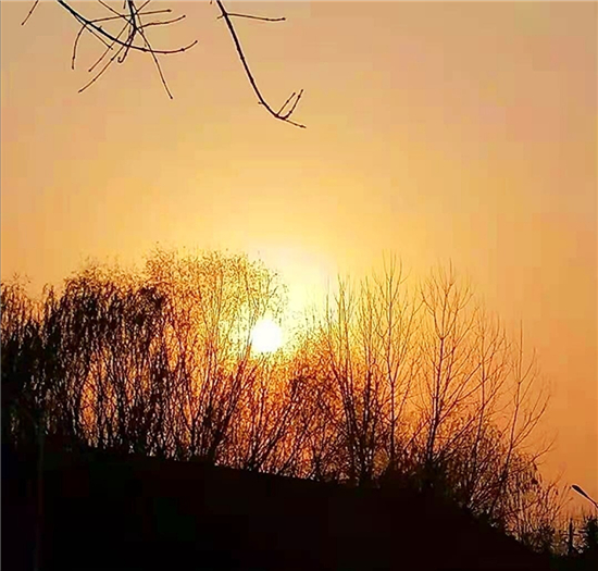 近日,我市接連幾天陽光燦爛,蔚藍的天空格外美麗。尤其是傍晚時分,夕陽西下,近處的樹干枝丫映襯著遠處絢麗的天空,就像一副絕美的畫卷,令人沉醉。