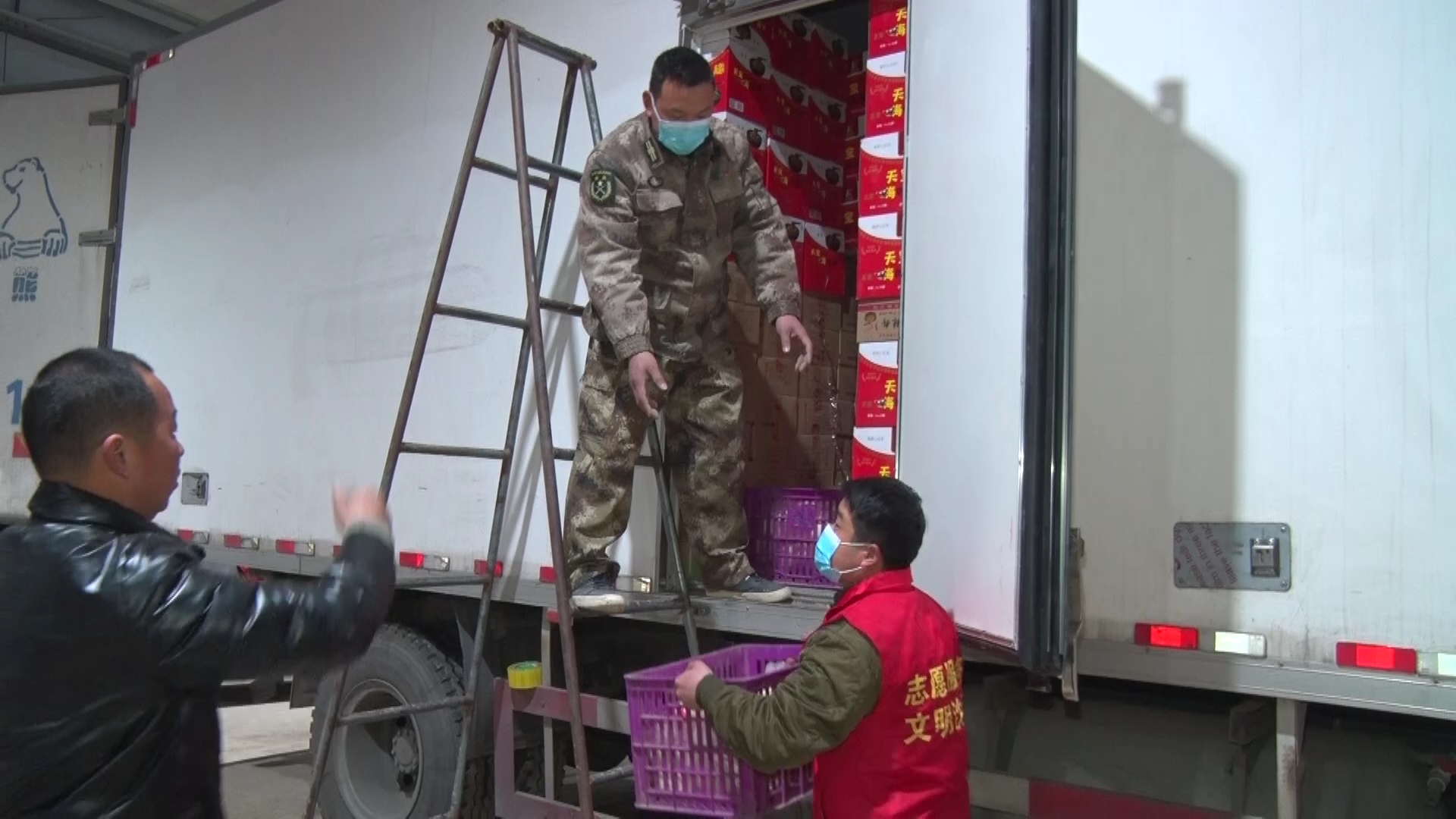 王國輝說:“咱們對接的就是河北南宮市,但是南宮市的工作人員考慮到咱們的安全,也不讓咱們進(jìn)入南宮的地域,而是去衡水,衡水是低風(fēng)險,現(xiàn)在不在風(fēng)險區(qū),這是對方為我們著想。我們把貨到了衡水的外圍一個指定的開闊地方,我們把貨卸下來,我們撤離,然后南宮的同志再過來,轉(zhuǎn)運到他們車上去?!?/p>