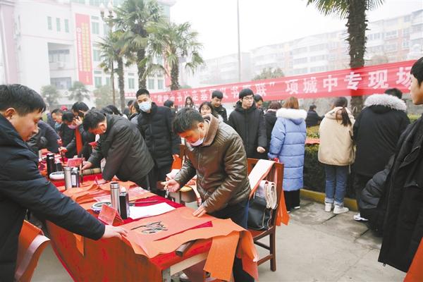 1月23日上午,項(xiàng)城市中等專業(yè)學(xué)校、市書(shū)法家協(xié)會(huì)聯(lián)合開(kāi)展了“我們的節(jié)日——義寫(xiě)春聯(lián)進(jìn)校園”活動(dòng),黃樹(shù)民等6位書(shū)法家受邀來(lái)校為廣大師生義務(wù)書(shū)寫(xiě)春聯(lián)。師生代表紛紛請(qǐng)名家為自己寫(xiě)春聯(lián),整個(gè)活動(dòng)洋溢著歡樂(lè)祥和的氣氛。“我們的節(jié)日——義寫(xiě)春聯(lián)進(jìn)校園”活動(dòng)不僅繼承和發(fā)揚(yáng)了中華優(yōu)秀傳統(tǒng)文化,而且豐富了在校師生的精神文化生活,助力了書(shū)香校園建設(shè),堅(jiān)定了師生的文化自信。 李立云 郭新明 攝
