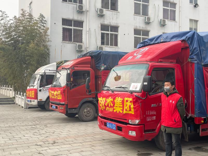 據(jù)工作人員介紹,本次馳援河北石家莊,河南邦杰集團(tuán)、湖北周口商會、湖北許平漯商會、新欣福珍集團(tuán)共組織募捐了近1萬斤優(yōu)質(zhì)東北大米、1000箱方便面、 500箱鴨蛋、10萬只口罩、近1萬件邦杰牛肉腸等近百萬元生活急需的食品和防疫物資?!榜Y援石家莊抗疫物資車隊(duì),出發(fā)!”隨著一聲令下,7輛裝滿物資的專車啟動(dòng),送往石家莊市最急需的地方。