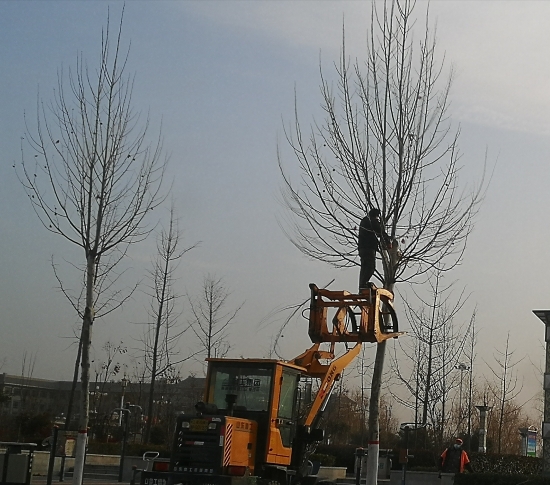 1月29日,在市城鄉(xiāng)一體化示范區(qū)政通路上,有工作人員正在修剪樹木。工作人員說(shuō),修剪樹木的最佳時(shí)期是冬季,一是樹上沒(méi)有葉子,這樣可以更輕松地查看樹的結(jié)構(gòu);二是冬季樹木正在休眠,在睡眠狀態(tài)下,樹木受到修剪的沖擊較小。圖為工作人員正在修剪路邊的行道樹。(周口日?qǐng)?bào)·周道客戶端記者 馬月紅攝)