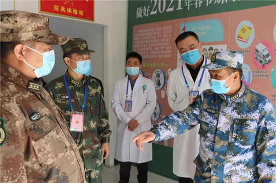 湯維政走進內科、外科、五官科、心電圖、心理測試等檢查科室,實地查看體檢站基礎設施、體檢流程、人員配備、疫情防控、后勤保障等情況。他看到體檢場所按照流程合理、尊重隱私、閉環(huán)管理的要求,結合疫情防控的需求優(yōu)化診室設置,醫(yī)務人員嚴格把控體檢項目的各個關口,給予了肯定和贊揚。湯維政與現場候檢的應征青年親切交談,了解他們的年齡、學歷、家庭等情況,對適齡青年、大學畢業(yè)生踴躍參軍、報效祖國的行為表示贊賞,勉勵他們積極接受祖國挑選,投身軍營建功立業(yè)。