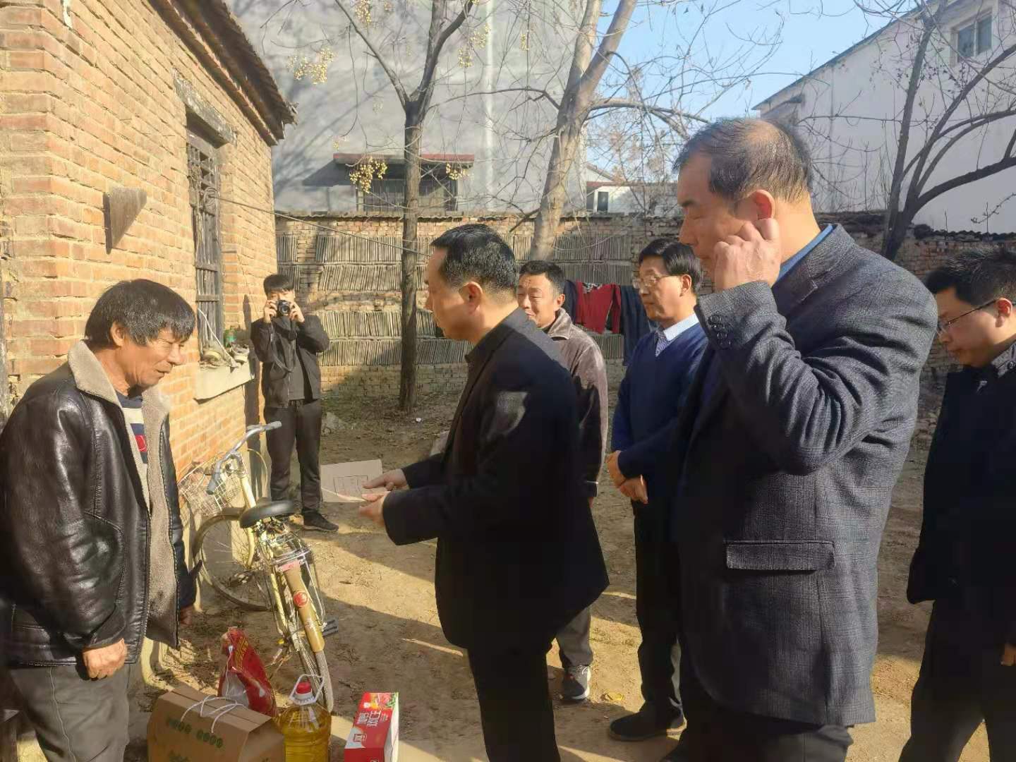 敢莊行政村困難群眾苑海軍腿腳不便,妻子雙目失明,一個(gè)女兒已經(jīng)出嫁,家庭經(jīng)濟(jì)困難。程若光在了解了苑海軍的家庭情況、身體狀況、生產(chǎn)生活問題后,問他們目前存在哪些困難,有什么事區(qū)里、鄉(xiāng)里急需幫助的。苑海軍說,鄉(xiāng)、村對(duì)他照顧得很好,他對(duì)黨和政府的關(guān)懷非常感謝!