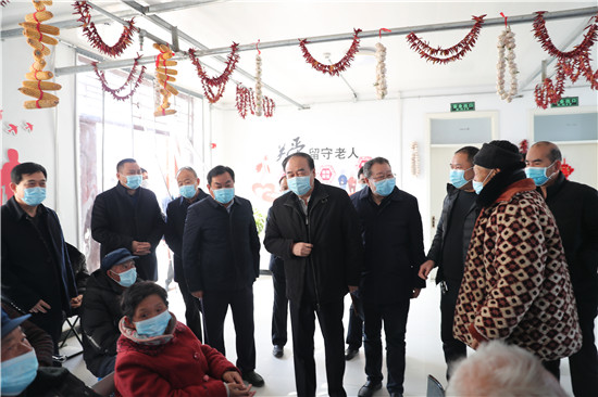 太康縣大許寨格花里行政村居村聯(lián)養(yǎng)點占地5畝,入住特困老人80余人,社會留守老人3人,老人們在這里有吃有穿還有娛樂活動,生活得十分幸福。徐濟(jì)超一行走進(jìn)大許寨鎮(zhèn)葛花李居村聯(lián)養(yǎng)點,向老人們祝賀新春。徐濟(jì)超指出,各級各部門要始終堅持以人民為中心的發(fā)展思想,踐行初心使命,聚焦群眾冷暖,用足用好惠民政策,千方百計幫助群眾解決實際問題,讓群眾老有所養(yǎng)、病有所醫(yī)、住有所居,讓大家共享改革發(fā)展成果,確保讓廣大群眾過個歡樂祥和的新春佳節(jié)。