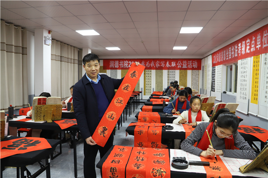 “春聯(lián)是我們中華民族獨有的文化符號,象征著喜慶,蘊含著吉祥。我為我家寫春聯(lián)公益活動具有很強的廣泛性、群眾性、公益性,送祝福、亮成績與弘揚傳承中華優(yōu)秀傳統(tǒng)文化相結(jié)合,在學(xué)生心中樹立了文化自信。”陳吳陸欣慰地說。
