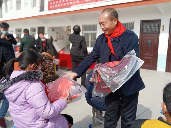 春節(jié)臨近,方凱自掏腰包6萬(wàn)余元,購(gòu)買164套新校服捐贈(zèng)給西華縣艾崗鄉(xiāng)半截樓小學(xué),一如既往地將大愛(ài)播撒與傳遞。說(shuō)起方凱的愛(ài)心行動(dòng),那是不勝枚舉。方凱10余年來(lái)堅(jiān)持幫貧濟(jì)困,每年都采取不同的方式,為貧困戶、貧困大學(xué)生、環(huán)衛(wèi)工、留守兒童、敬老院、貧困學(xué)校、福利中心智障孩子和災(zāi)區(qū)等進(jìn)行愛(ài)心捐助,已經(jīng)累計(jì)捐款捐物達(dá)1600多萬(wàn)元。為了表達(dá)對(duì)方凱的謝意,西華縣艾崗鄉(xiāng)半截樓小學(xué)向方凱贈(zèng)送了“大愛(ài)無(wú)疆育英才,心系未來(lái)報(bào)黨恩”的錦旗,同時(shí),還鄭重聘請(qǐng)方凱為該校名譽(yù)校長(zhǎng)。