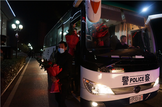 英雄凱旋,鮮花致敬。2月6日夜晚11時(shí)許,寧洛高速項(xiàng)城北收費(fèi)站警燈閃爍、隊(duì)列整齊,項(xiàng)城市公安局在這里隆重舉行儀式,熱烈歡迎 “1.8”專(zhuān)案組民警勝利歸來(lái)。副市長(zhǎng)、公安局長(zhǎng)萬(wàn)東偉,局黨委副書(shū)記、副局長(zhǎng)陳重,局黨委委員、政辦室主任衛(wèi)偉,局黨委委員袁啟峰等領(lǐng)導(dǎo)出席儀式,部分民警代表參加了儀式。萬(wàn)東偉同志代表局黨委對(duì)此案的成功偵破表示熱烈祝賀,真誠(chéng)感謝專(zhuān)案組民警的辛勤付出,并向大家致以崇高的敬意。
