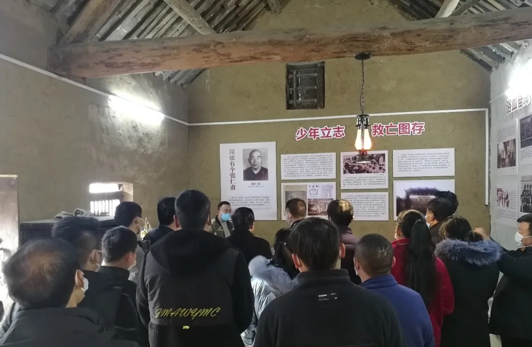 陳鵬指出,中國夢是習(xí)近平總書記提出的新思想、新方略, 中國夢的具體目標(biāo)是達(dá)到國家富強(qiáng)、民族復(fù)興、人民幸福, 其實質(zhì)是實現(xiàn)中華民族的偉大復(fù)興。所以, 鄉(xiāng)村振興戰(zhàn)略事關(guān)“三農(nóng)”的發(fā)展, 特別是廣大農(nóng)民的中國夢的實現(xiàn), 是實現(xiàn)整個中華民族中國夢的重要舉措。在改革開放40年的偉大進(jìn)程中, 黨和國家根據(jù)各個階段出現(xiàn)的不同問題, 提出了不同的戰(zhàn)略思想。當(dāng)今時代,鄉(xiāng)村振興戰(zhàn)略提出了新的總要求, 即產(chǎn)業(yè)興旺、生態(tài)宜居、鄉(xiāng)風(fēng)文明、治理有效、生活富裕,為新時代發(fā)展和解決“農(nóng)業(yè)、農(nóng)村、農(nóng)民”問題提供了有效途徑。陳鵬強(qiáng)調(diào),在今后的鄉(xiāng)村振興工作中,大家要牢固樹立“四個意識”,堅定“四個自信”,不忘初心、立足崗位、扎實工作,增強(qiáng)責(zé)任擔(dān)當(dāng),保持先鋒本色,以嶄新的精神風(fēng)貌、飽滿的工作熱情、堅強(qiáng)的意志品質(zhì),傳承紅色基因,講好奉母故事,深化“六個”活動,大力發(fā)展集體經(jīng)濟(jì),提升村民獲得感、幸福感指數(shù)。一是開展“支部聯(lián)手、共奔小康”結(jié)對幫扶活動,讓黨員先“動起來”。二是開展“咱村怎么干,大家說了算”村情民意大調(diào)查活動,把干群心“聚起來。三是創(chuàng)辦“鄉(xiāng)村大食堂”,把老年人“養(yǎng)起來”。解決鰥寡孤獨老人吃飯問題,探索“以土地養(yǎng)老、以房屋養(yǎng)老、以股份養(yǎng)老”新的養(yǎng)老服務(wù)模式,最終實現(xiàn)全民養(yǎng)老,構(gòu)建“老有所養(yǎng)、老有所為、老有所依、老有所樂”的服務(wù)體系。四是組建鄉(xiāng)村振興“婦女文藝宣傳隊”,把半邊天“組織起來”。五是改建“農(nóng)家書屋”,把青少年“管起來”。利用閑散房屋改建農(nóng)家書屋,退休教師義務(wù)參加輔導(dǎo),有效解決留守兒童放學(xué)后無人輔導(dǎo)的現(xiàn)實問題和外出務(wù)工父母的后顧之憂,讓他們在愉快的環(huán)境下學(xué)習(xí)知識、開闊視野,為今后的鄉(xiāng)村振興儲備人才。六是整合資源,把產(chǎn)業(yè)“做起來”。黨支部要領(lǐng)辦供銷合作社,以“三變改革”為抓手,采取“四荒地、四邊地”綜合整治,盤活沉睡資源,迸發(fā)集體經(jīng)濟(jì)活力,穩(wěn)步推進(jìn)農(nóng)村產(chǎn)權(quán)制度改革,把村民分散的土地、人力、資金、房屋等資源進(jìn)行整合,成立土地股份合作社、勞務(wù)股份合作社、置業(yè)股份合作社、旅游餐飲服務(wù)股份合作社、電子商務(wù)股份合作社等“五大合作社”,對入股村民進(jìn)行入股分紅和集體紅利二次分配,讓群眾感黨恩、聽黨話、跟黨走,享受集體經(jīng)濟(jì)發(fā)展帶來的更大紅利。屆時我們會在做好村級五大合作社的基礎(chǔ)上,探索建立鎮(zhèn)域級合作社,整合全鎮(zhèn)各村資源,聯(lián)手打造農(nóng)村集體經(jīng)濟(jì)航空母艦,由過去各村單打獨斗變?yōu)榇迓?lián)手闖市場,提高市場競爭力和抗風(fēng)險能力,以此推動奉母農(nóng)村集體經(jīng)濟(jì)健康快速發(fā)展。黨課結(jié)束后,在講解員的帶領(lǐng)下,大家依次參觀了周口市第一個黨支部舊址,認(rèn)真參觀每一件實物,用心聆聽每一個故事,與會人員不禁為奉母籍革命老前輩張仁甫帶領(lǐng)大家推翻封建社會三座大山不屈不撓的英雄壯舉斗爭紛紛點贊!