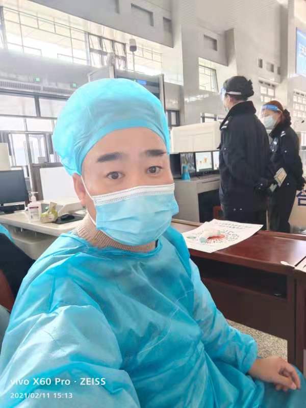 在執(zhí)勤現(xiàn)場,當(dāng)記者問及除夕夜在這里執(zhí)勤有啥想法沒?一旁的周文旭搶答說:“疫情防控是件大事,舍小家顧大家一直以來就是我們醫(yī)院的辦院宗旨和服務(wù)理念”“今天值班一夜,明天大不了睡一天,也要把工作干好,在崗一分鐘,責(zé)任60秒”王書浩說。