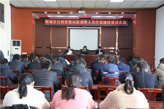 2月19日,鄲城縣自然資源局對(duì)新調(diào)整人員進(jìn)行任前廉政談話。會(huì)議由局辦公室主任潘梅主持。局黨組成員、副局長朱云英出席會(huì)議并講話。局機(jī)關(guān)各股室及各自然資源所中層干部參加會(huì)議。