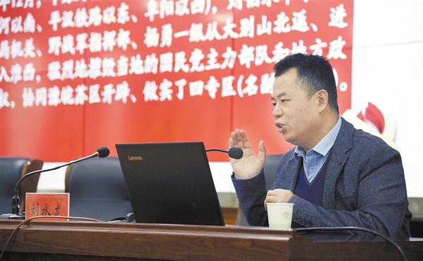 2月26日下午,商水縣舉行學(xué)黨史國史紅色教育大講堂活動。商水籍北大學(xué)子劉水龍結(jié)合史料,精彩講述賀龍北伐在商水播下革命火種、彭雪楓經(jīng)周口東進(jìn)豫皖蘇燃起商水革命烈火、豫皖蘇軍區(qū)解放周口商水浴火重生,以及火熱革命中涌現(xiàn)出來的商水英烈艾力、趙海靜,支前模范徐乃貞等人的英勇事跡。這些生動鮮活的歷史人物故事,再現(xiàn)了英雄兒女在商水大地上勇于革命、不怕犧牲的紅色革命歷史。劉水龍用豐富的史實(shí)、鮮明的觀點(diǎn)、精辟的講述,贏得臺下聽眾陣陣掌聲。記者 付永奇 攝