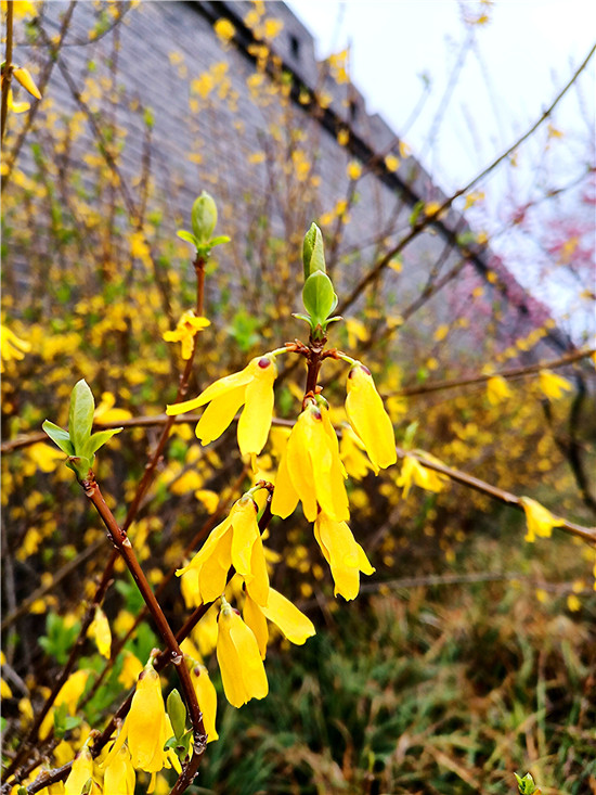 春雨細(xì)如絲,如絲霡霂時。近日,我市下了一場春雨,雖然因?yàn)橛晁o人以乍暖還寒之感,但被春風(fēng)喚醒、被春雨潤澤的各種花兒們,比如梅花、李花、迎春花等,卻爭相綻放,花色更濃。