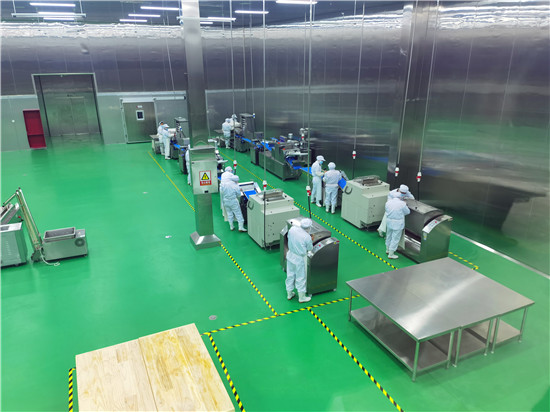 據(jù)了解,周口乾盛中央廚房是川匯區(qū)2020年重點(diǎn)招商引資項(xiàng)目。公司以綠色、健康、營養(yǎng)、安全的餐飲服務(wù)為宗旨,采用國內(nèi)先進(jìn)的食品自動生產(chǎn)流水線,采取“統(tǒng)一配方、統(tǒng)一加工、統(tǒng)一配送”的方式,為全市大中專院校、中小學(xué)校、企事業(yè)單位等提供專業(yè)團(tuán)膳服務(wù)。記者在現(xiàn)場看到,該企業(yè)的生產(chǎn)操作間細(xì)分為面食、烹飪、米飯、凈菜等獨(dú)立區(qū)域。操作間里的工作人員穿戴一次性消毒服裝、口罩、頭罩、鞋套,各司其職、有條不紊地操作設(shè)備。全廠安裝有300多個攝像頭,實(shí)現(xiàn)360度無死角監(jiān)控,可以隨時(shí)查看生產(chǎn)和配餐情況。在蔬菜清洗處理方面,該企業(yè)先對蔬菜進(jìn)行拆箱、分揀并開始一次清洗,然后進(jìn)行二次清洗、切割和脫水,使用凈化水對蔬菜進(jìn)行旋流沖洗,并通過探針探測水的潔凈度,根據(jù)水質(zhì)量隨時(shí)更換。生產(chǎn)操作間內(nèi)的先進(jìn)工藝和設(shè)備也格外吸人眼球,旋轉(zhuǎn)式燃?xì)獬村佋谶@里被稱為炒菜機(jī)器人,讓炒菜實(shí)現(xiàn)了智能化、標(biāo)準(zhǔn)化,工作人員只需將切配脫水后的材料按照標(biāo)準(zhǔn)調(diào)配好入鍋,設(shè)置自動運(yùn)轉(zhuǎn)程序就可以,不用人工攪拌。