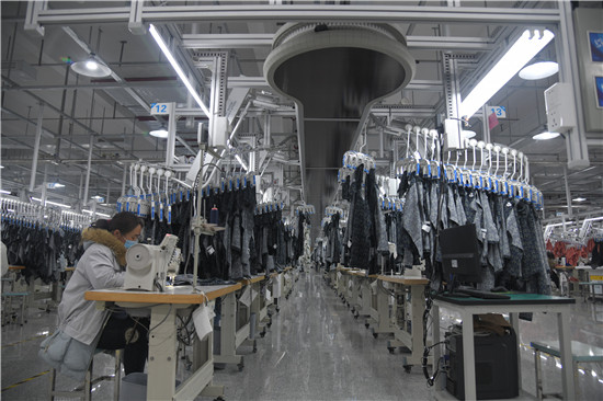 3月8日上午,位于商水縣產業(yè)集聚區(qū)內的河南阿爾本制衣有限公司數千名女工在縫制訂單衣服。
