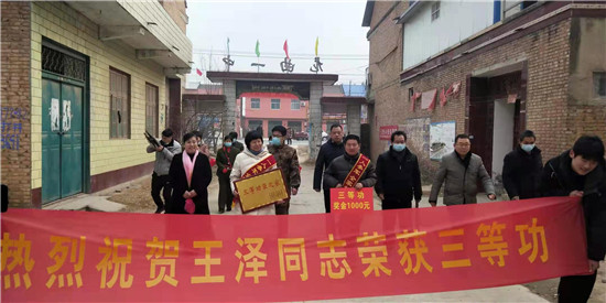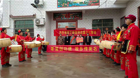 太康縣龍曲鎮(zhèn)的4名現(xiàn)役軍人在部隊榮立“三等功”,日前,太康縣龍曲鎮(zhèn)退伍軍人服務(wù)站站長、市人大代表劉志華在太康縣軍人事務(wù)局領(lǐng)導(dǎo)的帶領(lǐng)下,吹著嗩吶、打著腰鼓、扯著橫幅,把立功喜報和慰問金,送到龍曲鎮(zhèn)張山行政村張鵬舉、黑李王行政村丁帥龍、軒莊行政村師行光、河坡行政村王澤家中,營造了一人當兵、全家光榮的風(fēng)尚,堅定了軍人建功立業(yè)的信心。