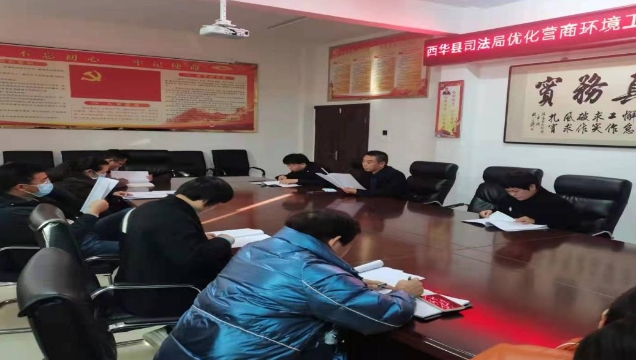 11月25日,西華縣司法局召開優(yōu)化營商環(huán)境工作推進會。該局局長張素貞作重要講話,該局黨組成員、政治部主任徐啟飛主持會議,各相關(guān)股室負責人參加會議。