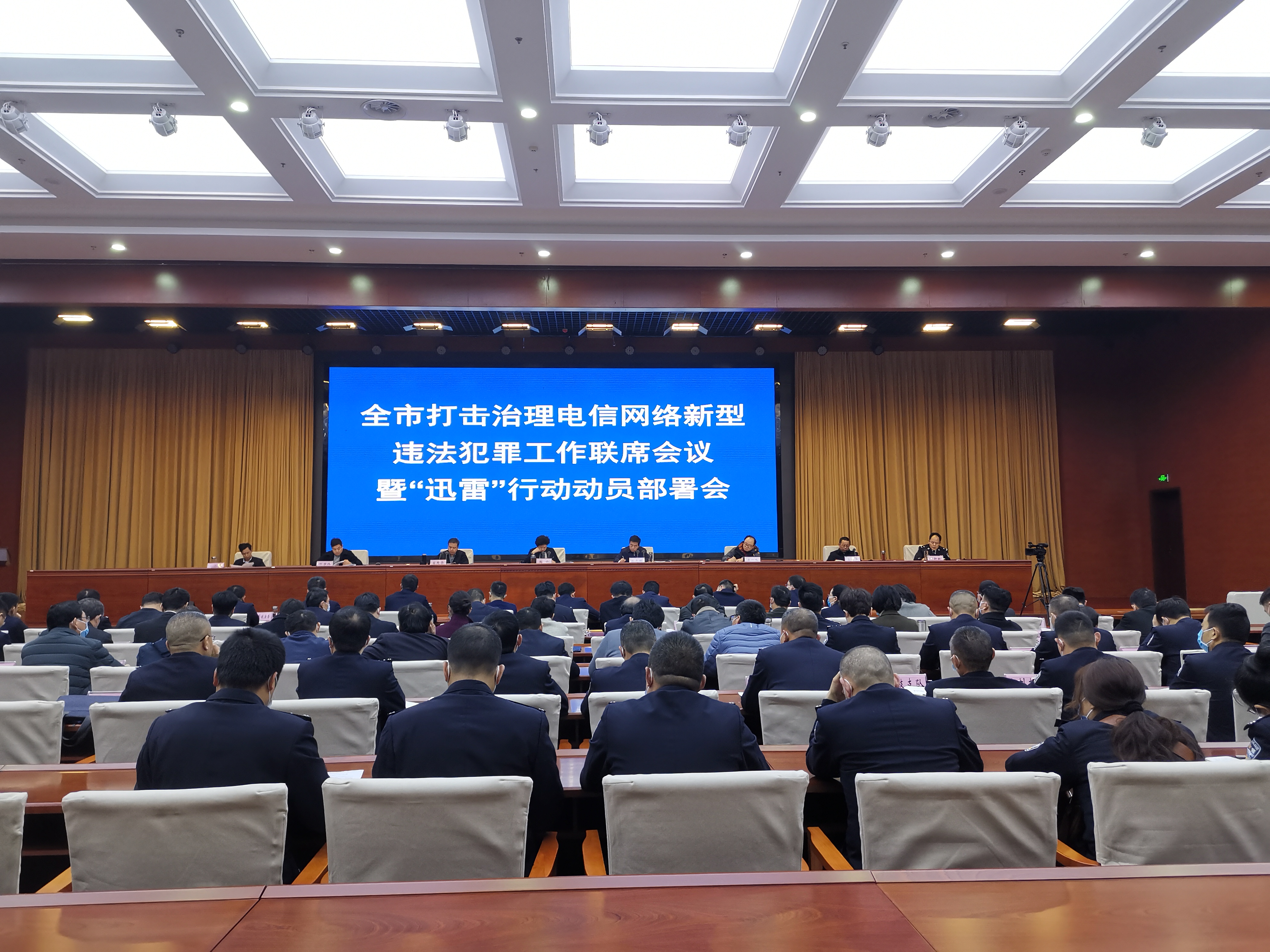 3月19日下午,我市召開打擊治理電信網(wǎng)絡(luò)新型違法犯罪工作聯(lián)席會(huì)議暨“迅雷”行動(dòng)動(dòng)員部署會(huì)。市委常委、政法委書記路云,副市長、公安局長張?jiān)鲄⒓訒?huì)議。