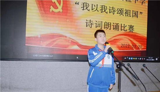 “我是你掛著眼淚的笑渦/我是新刷出的雪白的起跑線/是緋紅的黎明/正在噴薄/——祖國??!”一句句飽含深情的朗誦,一陣陣熱情如潮的掌聲。3月20日下午,鄲城縣第二實(shí)驗(yàn)中學(xué)“我以我詩頌祖國”學(xué)生愛國詩詞朗誦比賽熱烈舉行。