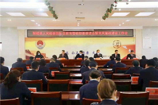 3月11日,鄲城縣人民檢察院召開隊(duì)伍教育整頓部署推進(jìn)會(huì)暨黨風(fēng)廉政建設(shè)工作會(huì)。會(huì)議深入學(xué)習(xí)貫徹習(xí)近平新時(shí)代中國特色社會(huì)主義思想,特別是習(xí)近平法治思想,全面貫徹落實(shí)全國、全省、全市、全縣政法隊(duì)伍教育整頓動(dòng)員部署會(huì)和高檢院、省院、市院檢察隊(duì)伍教育整頓動(dòng)員部署會(huì)暨黨風(fēng)廉政建設(shè)會(huì)議精神??偨Y(jié)2020年縣檢察院全面從嚴(yán)管黨治檢工作,分析新形勢(shì)新任務(wù),對(duì)縣檢察院檢察隊(duì)伍教育整頓和今年的黨風(fēng)廉政建設(shè)工作統(tǒng)籌作出安排部署。