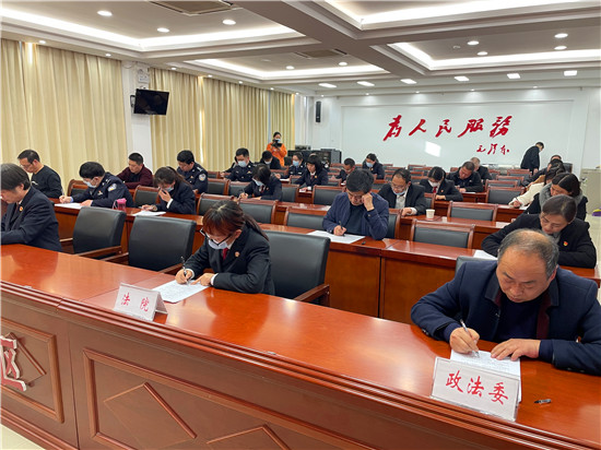 3月25日,川匯區(qū)舉行政法隊(duì)伍教育整頓知識競賽活動。競賽采取“雙隨機(jī)”的形式,在區(qū)委政法委機(jī)關(guān)、區(qū)法院、區(qū)檢察院、區(qū)公安分局、區(qū)司法局隨機(jī)各挑選6名人員進(jìn)行組隊(duì),隨機(jī)抽取考題開展競賽。測試考卷共計(jì)36道試題,考試時(shí)間為40分鐘。區(qū)委常委、政法委書記李祥生主持競賽測試。測試采取閉卷的方式,并進(jìn)行全程錄像。考試結(jié)束后,區(qū)紀(jì)委監(jiān)委、區(qū)委組織部相關(guān)負(fù)責(zé)人現(xiàn)場改卷,現(xiàn)場公布成績,現(xiàn)場通報(bào)頒獎。