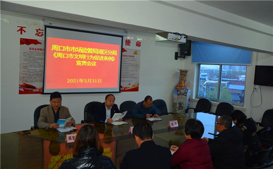 3月31日,周口市市場監(jiān)督管理局港區(qū)分局召開《周口市文明行為促進(jìn)條例》宣貫會(huì)議。局長崔健就如何學(xué)習(xí)、遵守、貫徹、宣傳好《周口市文明行為促進(jìn)條例》向全局同志提出具體要求。