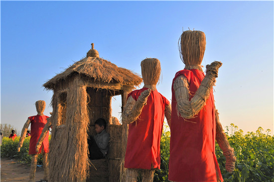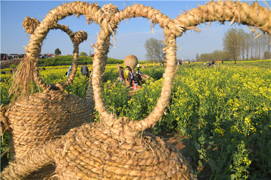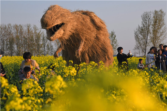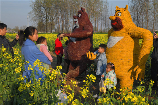 4月5日上午,在商水縣鄧城鎮(zhèn)沙潁河畔萬(wàn)畝油菜花海,來(lái)自周邊縣市區(qū)和附近鄉(xiāng)鎮(zhèn)的群眾一撥接一撥地駕車到這兒打卡游玩,特別是卡通稻草人景點(diǎn)內(nèi)熱鬧非凡。
