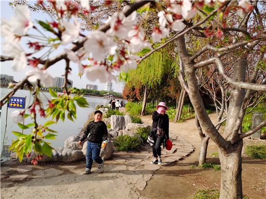 最美四月天,踏青正當(dāng)時。清明節(jié)期間,周口公園、植物園里金黃的連翹、婀娜多姿的美人梅、鵝黃嫩綠的新柳、盛開的桃花……一片生機盎然、春意融融的景象,市民紛紛來到戶外,沐浴春光,擁抱大自然,悠閑享受假日時光。②9