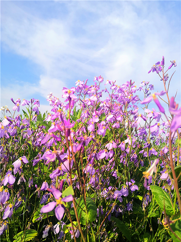 據(jù)了解,諸葛菜也叫二月蘭,因早春農(nóng)歷二月前后開(kāi)花,所以叫二月蘭,花開(kāi)溫柔,娟秀,清雅,很是招人喜歡。而且具有較強(qiáng)的耐寒性與適應(yīng)性,自繁能力比較強(qiáng),一次播種能年年自成群落,能夠有效控制裸地?fù)P塵起沙、抑制雜草生長(zhǎng)。諸葛菜花花期相當(dāng)長(zhǎng),能夠從早春時(shí)節(jié),一直開(kāi)到暮春初夏間,當(dāng)百花盛開(kāi)時(shí),它依然露著笑臉。因此著實(shí)是春天里的“早到遲退”之花。③5