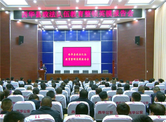 近日,西華縣召開政法隊(duì)伍教育整頓英模報(bào)告會(huì)。西華縣委常委、政法委書記陳秉生,縣法院院長王贊華,縣檢察院檢察長馬靈鈞出席報(bào)告會(huì),縣委政法委,縣公安局、檢察院、法院、司法局中層及以上干警參加報(bào)告會(huì)。