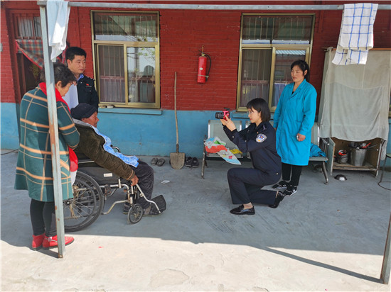 在大王樓敬老院康養(yǎng)的趙中原老人,已經(jīng)八旬有余,因常年臥床,行動不便一直未能辦理二代居民身份證。三月下旬,其突發(fā)疾病,急需辦理醫(yī)保手續(xù)入院治療。但由于沒有身份證無法辦理相關手續(xù),這可急壞了敬老院負責人和工作人員。按正常程序,需要帶老人去派出所戶籍室采集人像及指紋信息,由于老人年邁又行動不便,他們選擇向沈丘縣公安局西關派出所求助。接到電話后,西關派出所戶籍民警王欠積極與社區(qū)民警高坤朋一道前往敬老院。為了采集到合格信息,王欠與敬老院工作人員固定好老人坐姿,自己單膝下跪,為趙中原老人拍照。由于老人年邁且長期臥床,坐姿和面部表情不好調(diào)整,王欠反復十余次單膝跪地,才采集到合格的人像信息。