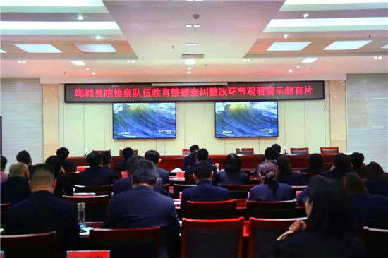 為進(jìn)一步推進(jìn)檢察隊伍教育整頓工作,做好隊伍教育整頓查糾整改階段思想發(fā)動工作,增強(qiáng)干警的廉潔自律意識,筑牢拒腐防變的思想防線,4月13日晚上,鄲城縣人民檢察院組織全體干警觀看警示教育片《“保護(hù)傘”自身難保,“坐地虎”坐進(jìn)監(jiān)牢》。