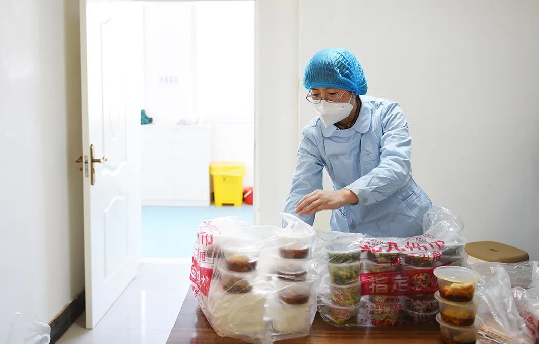 “韓某對(duì)銀耳過(guò)敏,醫(yī)院內(nèi)餐部做的巧碗里有銀耳,絕對(duì)不能給她吃,要另外做一份;于某蛋白低,每餐要加一盒牛奶一個(gè)雞蛋,他不喜歡吃雞蛋,勸著他也得吃;有一個(gè)血糖高,早餐兩個(gè)素包子,不能帶粉條,粉條含淀粉,會(huì)增加血糖……”說(shuō)起這些病人的情況,她了如指掌,一邊說(shuō)著,一邊熟練地將幾筐飯菜分類打包,每一份都用食品袋包好,上面都寫上名字,再分別送去。