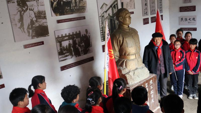 在全國(guó)上下掀起黨史學(xué)習(xí)教育熱潮之際,近日,來(lái)自吉鴻昌小學(xué)六(1)班的30名孩子,在學(xué)校少先隊(duì)輔導(dǎo)員的帶領(lǐng)下來(lái)到呂潭學(xué)校舊址,開(kāi)展主題為“弘揚(yáng)鴻昌精神、傳承紅色基因”的主題隊(duì)會(huì)活動(dòng),參觀了吉鴻昌學(xué)校和吉鴻昌故居,循著英雄的足跡,親身感受吉鴻昌精神的內(nèi)涵,接受一場(chǎng)紅色的精神洗禮。期間,在吉鴻昌將軍塑像前,何國(guó)志老人生動(dòng)地講解了吉鴻昌將軍親手?jǐn)捞弥丁?chuàng)辦吉鴻昌學(xué)校、首次向中國(guó)人介紹電視等身前事跡,在場(chǎng)的孩子感動(dòng)得熱淚盈眶。 “聽(tīng)了何爺爺?shù)闹v述,我被吉鴻昌將軍的事跡深深感動(dòng),長(zhǎng)大后也要成為一名像他一樣的人!”張晨曦同學(xué)說(shuō)。