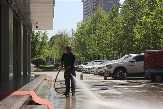 圖1 環(huán)衛(wèi)工人手持水槍沖洗街道