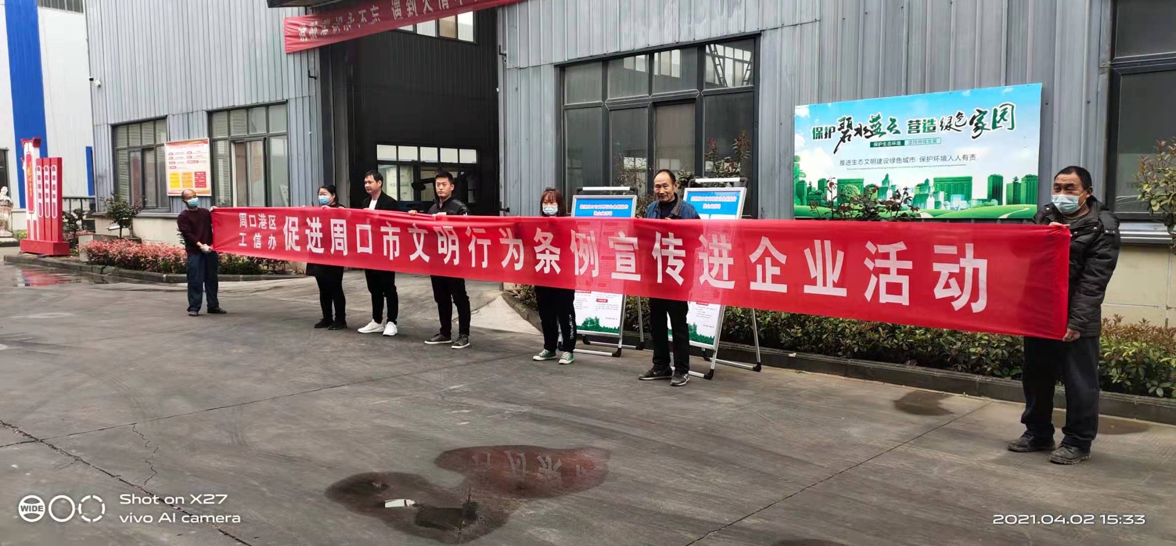 4月2日下午,周口港區(qū)工信辦組織人員開展宣傳《周口市文明行為促進(jìn)條例》進(jìn)企業(yè)的活動(dòng)。