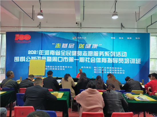 此次培訓(xùn)班由河南省社會(huì)體育事務(wù)中心、周口市教育體育局主辦,周口市社會(huì)體育指導(dǎo)中心、周口市老年人體育指導(dǎo)中心、周口市社會(huì)體育指導(dǎo)員協(xié)會(huì)承辦,采取理論講座與實(shí)操訓(xùn)練相結(jié)合的方式進(jìn)行,培訓(xùn)的項(xiàng)目為圍棋、瑜伽和廣場(chǎng)舞。