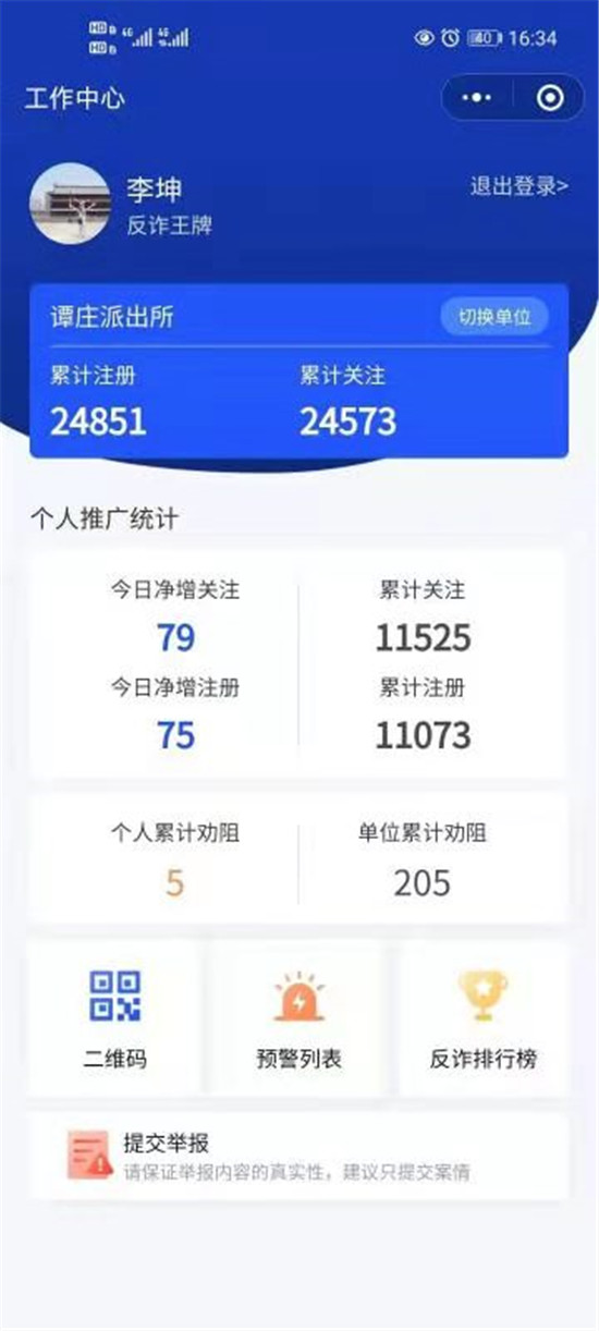 今年2月,商水縣公安局開始利用“金鐘罩”預(yù)防電信詐騙活動。在譚莊派出所多年的李坤拿著分配給自己的二維碼,做個小牌子掛到脖子上,開始他的“金鐘罩”宣傳注冊工作。轄區(qū)企事業(yè)單位、村莊、群眾文化廣場、KTV、網(wǎng)吧、超市、洗浴中心等人員密集場所是他必須進(jìn)的地方,見親戚說、逢朋友講,三句話離不開“金鐘罩”反詐騙宣傳。