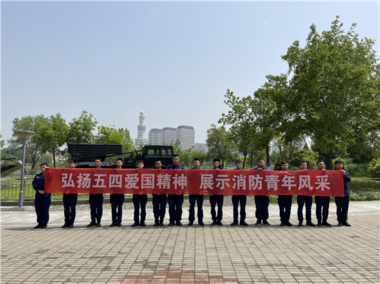 5月4日上午,天氣晴朗。在周口公園,周口市城鄉(xiāng)一體化示范區(qū)消防大隊(duì)的青年消防隊(duì)員們通過(guò)跑步訓(xùn)練等方式慶祝五四青年節(jié)。消防隊(duì)員欒慶帥告訴記者:“今天是五四青年節(jié),我們通過(guò)訓(xùn)練、參觀國(guó)防設(shè)施這樣的方式,來(lái)表達(dá)我們的愛(ài)國(guó)熱情。”②9