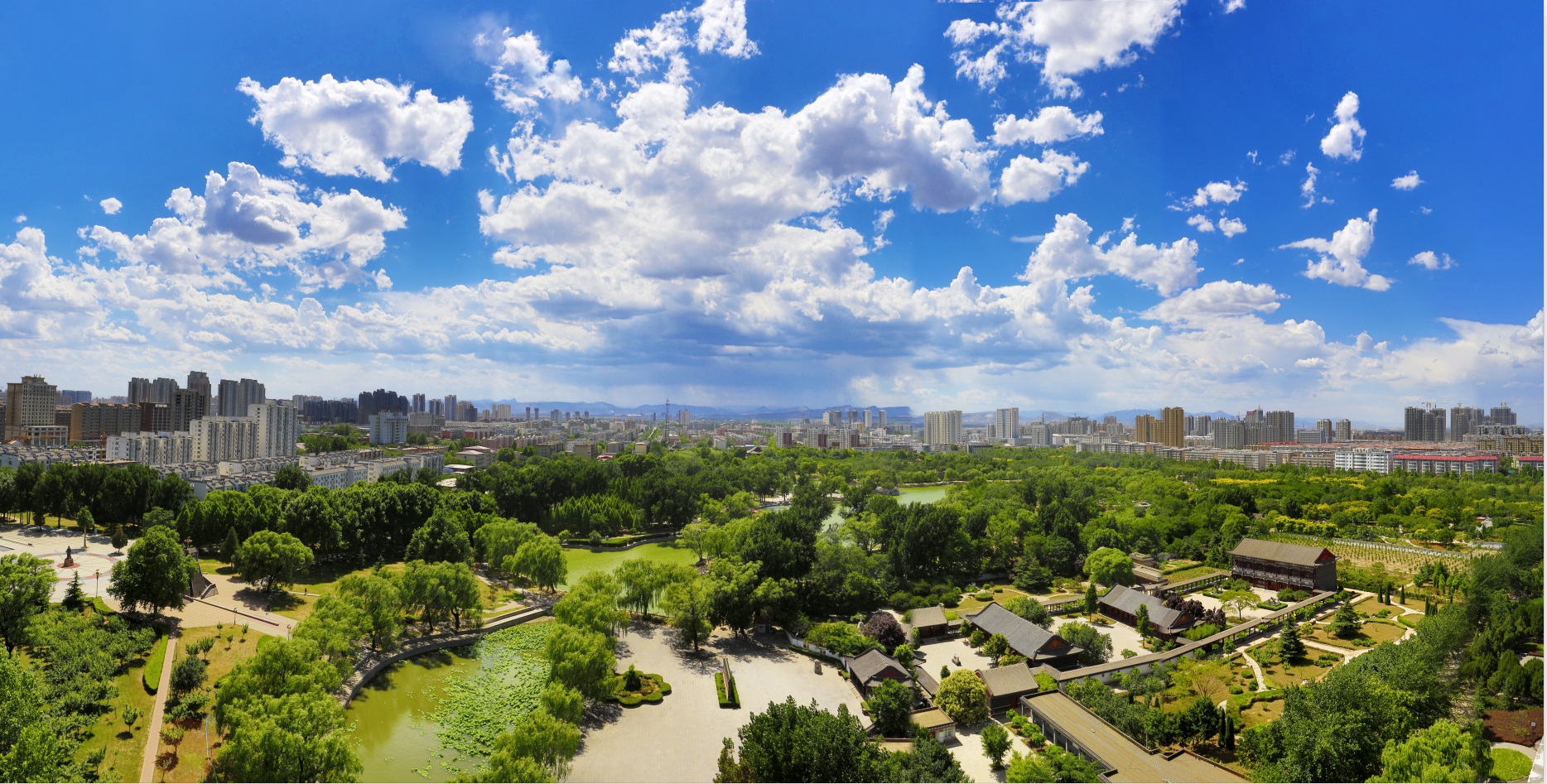 圖2:近年來,邢臺市主城區(qū)空氣質量持續(xù)好轉。圖為邢臺市達活泉公園鳥瞰。(邢臺日報社全媒體記者 黃濤 攝)