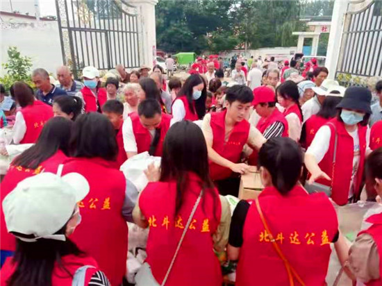 不一會兒,在志愿者組織下,來到現(xiàn)場的老人們便依次排隊(duì)領(lǐng)取了物品,滿臉充滿笑容?!懊看温犝f北斗達(dá)的孩子們過來給我們包餃子吃,我都高興得一宿睡不著覺。得知今天孩子們給我們送餃子和粽子吃,我就起了個大早,別提心里多高興了?!?5歲村民李大爺手提著領(lǐng)到的水餃和粽子高興地對記者說。