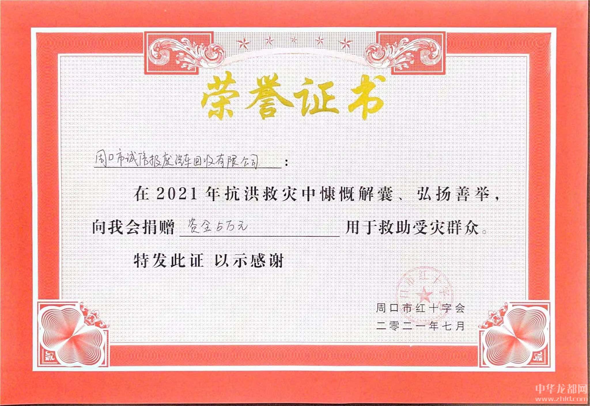 同時,張站國作為周口市誠信報廢汽車有限公司負責人,為切實履行企業(yè)的社會責任,周口市誠信報廢汽車有限公司于2021年7月27日向周口市紅十字會捐贈現(xiàn)金人民幣5萬元,用于防汛救災、群眾幫扶、衛(wèi)生防疫和災后重建工作。