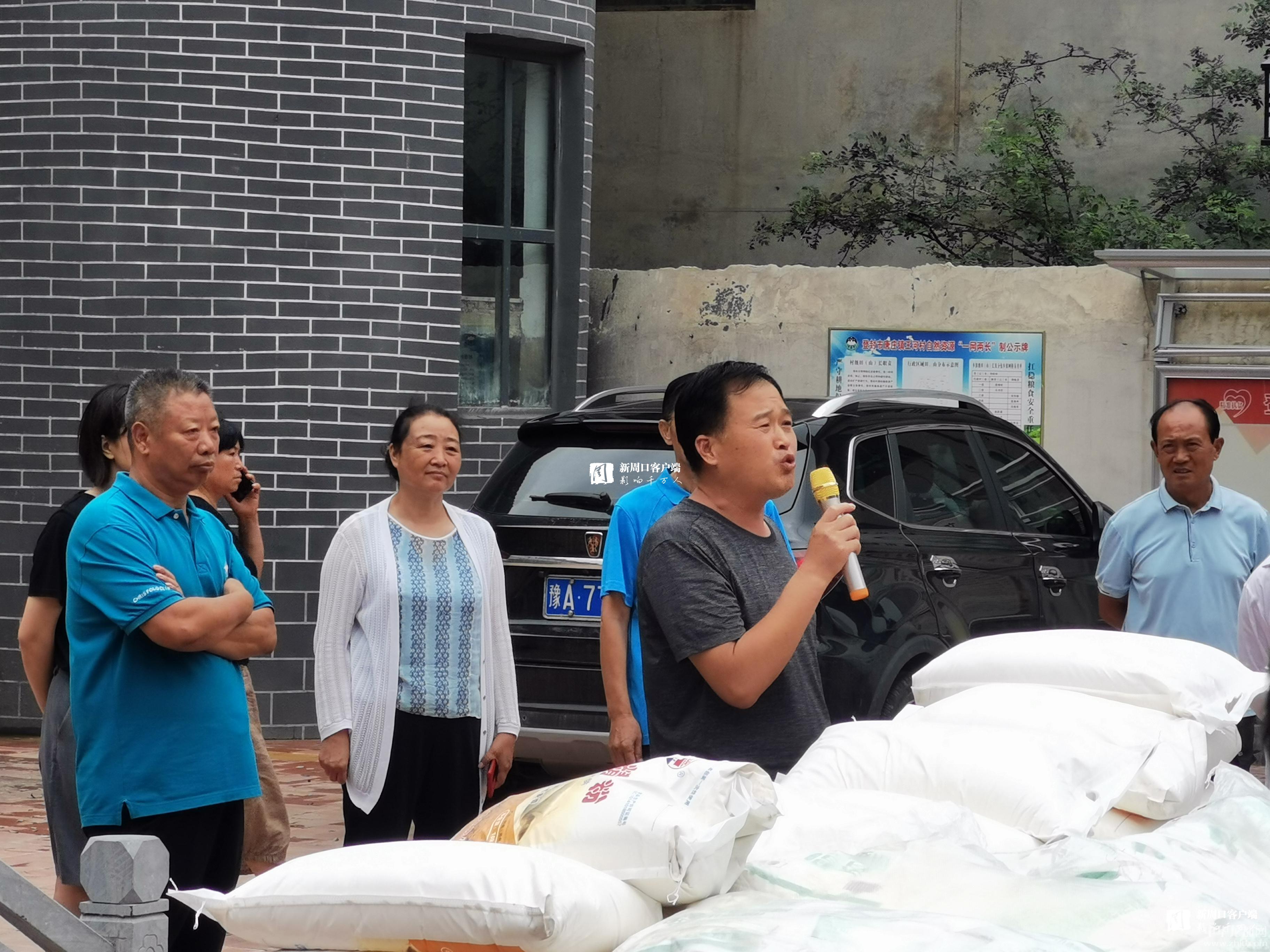 此時(shí),登封市唐莊鎮(zhèn)王河村群眾早已在王河村委等候張華的援助。省人大代表、河南科碩農(nóng)業(yè)科技有限公司董事長張華捐贈(zèng)給王河村民200袋大米、200袋面粉,價(jià)值2萬多元。王河村的群眾激動(dòng)地連連感謝:“張總真是菩薩心腸!”