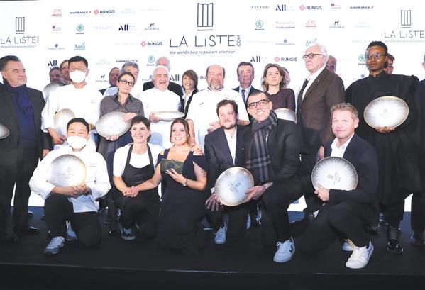 11月29日,在位于巴黎的法國外交部舉行的LA LISTE國際美食榜單揭曉活動(dòng)現(xiàn)場(chǎng),獲獎(jiǎng)廚師合影留念。