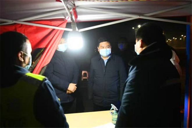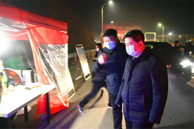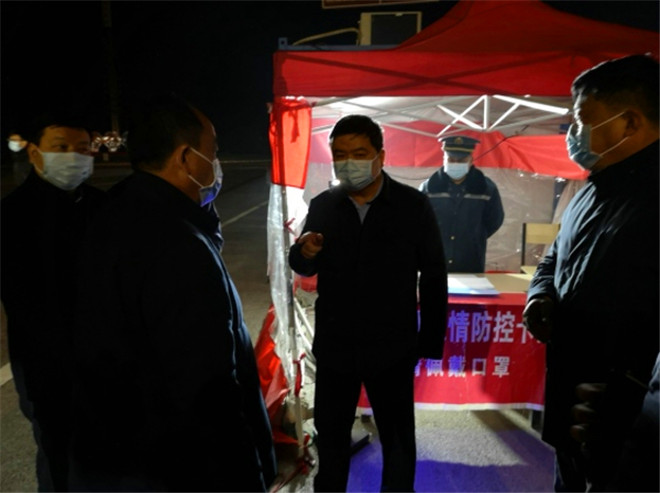 1月3日晚,鹿邑縣委書記李剛,縣委副書記、縣長郭俊濤帶領(lǐng)縣委辦、衛(wèi)健委、公安局、督查局、交通局等部門負責同志先后到鹽洛高速鹿邑西站、老子故里站疫情防控卡點,實地檢查指導疫情防控工作??h委常委、統(tǒng)戰(zhàn)部部長史凱歌,副縣長翟杰,縣政府領(lǐng)導成員谷長征一同檢查。③2