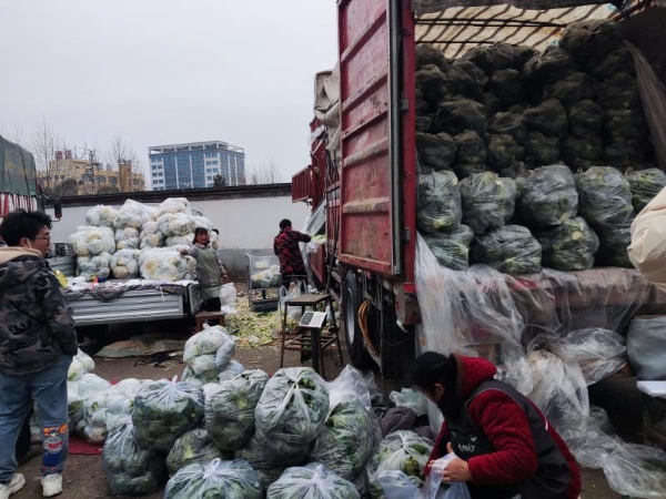 在市場(chǎng)入口,一輛輛載著各類商品的大貨車正排著隊(duì)往里進(jìn),測(cè)溫、驗(yàn)證、登記、抽檢,進(jìn)入市場(chǎng)后,幾輛三輪車迅速圍上,開始卸貨,一切都有條不紊?!斑@一車大蔥是市里十幾家飯店要的?!睆垘煾颠呅敦涍呎f,“過年有不少大飯店正常營業(yè),現(xiàn)在就開始備貨了?!碑?dāng)被問及現(xiàn)在和平常有什么不一樣時(shí),張師傅略顯疲憊的臉上露出了笑容,“肯定不一樣,平常兩天來一次,現(xiàn)在一天一次,一年到頭就現(xiàn)在最忙,辛苦幾天,掙錢過個(gè)好年”。