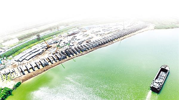 • 鹿邑港區(qū)玄武作業(yè)區(qū)于2021年5月底破土動工,批復(fù)岸線118米,建設(shè)2個500噸級泊位,設(shè)計年通過能力為散貨進(jìn)出口100萬噸。目前,鹿邑港區(qū)玄武作業(yè)區(qū)主體工程已全部完工,機(jī)械作業(yè)設(shè)備已全部到位。記者在現(xiàn)場看到,工人正在進(jìn)行后方陸域及服務(wù)區(qū)建設(shè)。