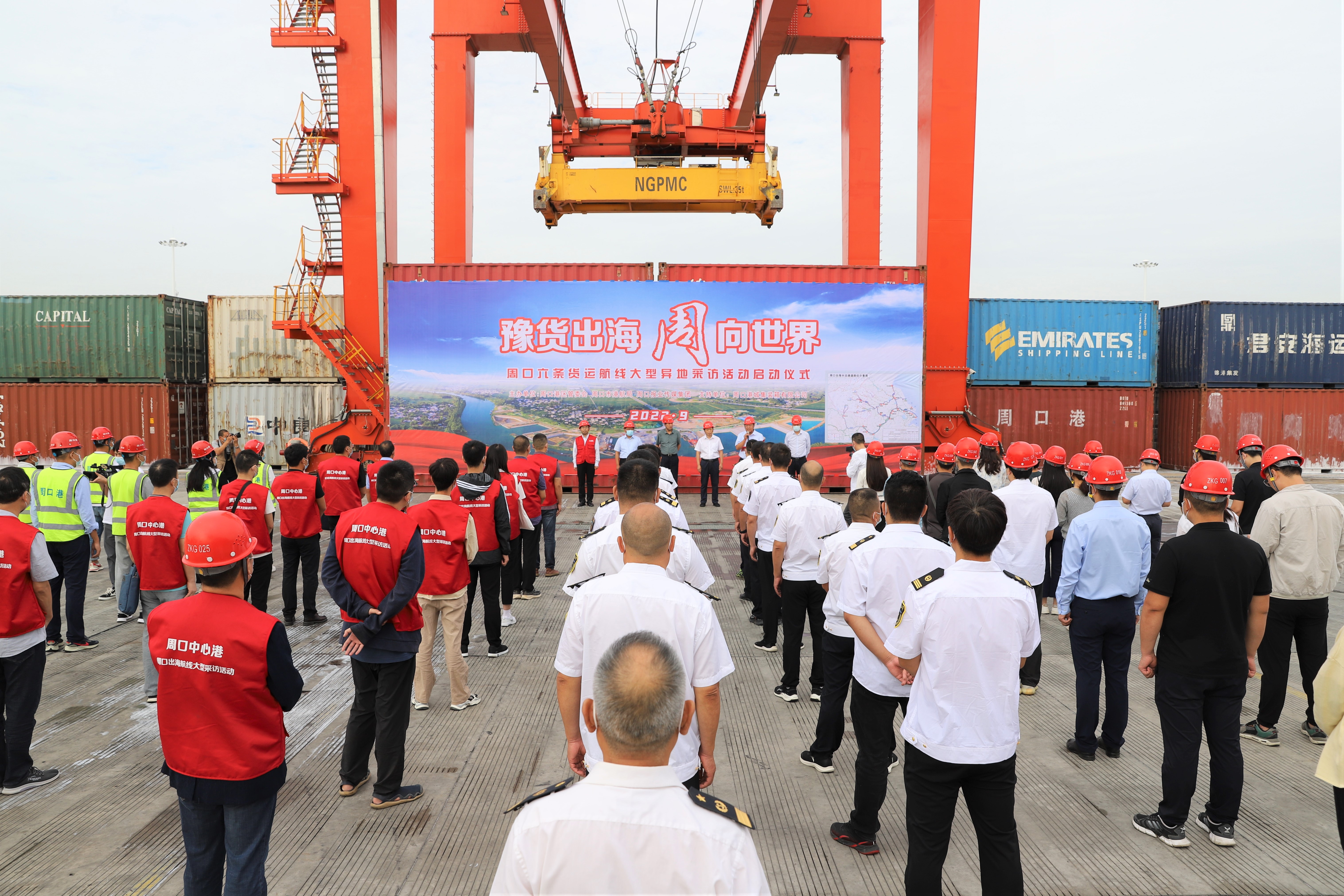 • 9月21日上午,由周口港區(qū)管委會、周口市港航局、周口報業(yè)傳媒集團(tuán)、周口港城集裝箱有限公司聯(lián)合組織開展的豫貨出海 “周”向世界——周口六條貨運集裝箱航線大型異地采訪活動在周口中心港碼頭正式啟動。