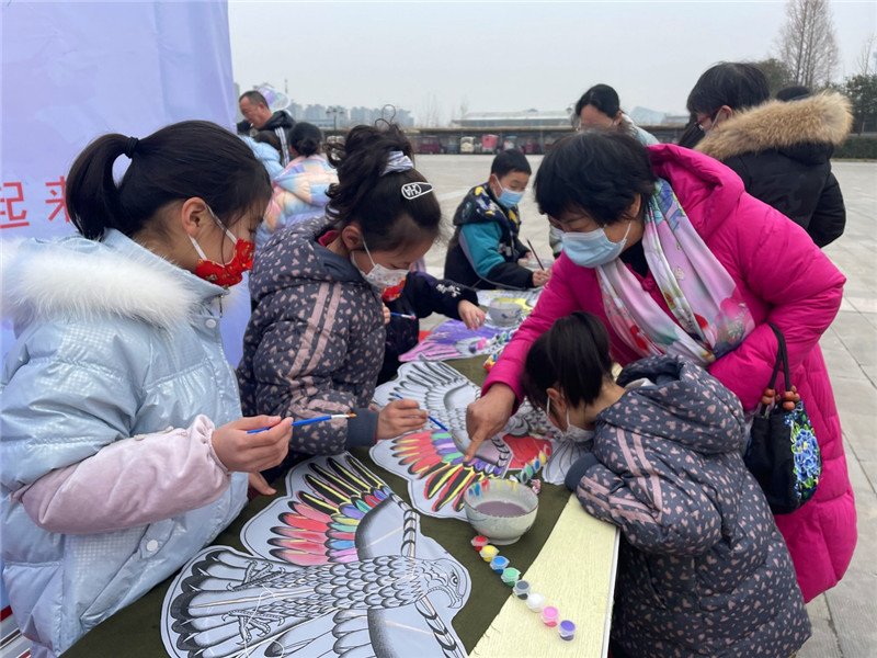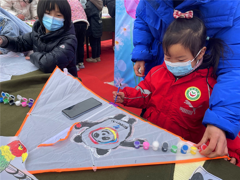 “媽媽你看,我畫的冰墩墩可愛嗎?”2月15日上午,“放飛春天——兒童DIY手繪風箏”活動在周口市文化藝術中心西廣場如期舉辦。一名身穿紅色棉服的小女孩在媽媽的幫助下,創(chuàng)作完成了一只畫有“冰墩墩”形象的手繪風箏。